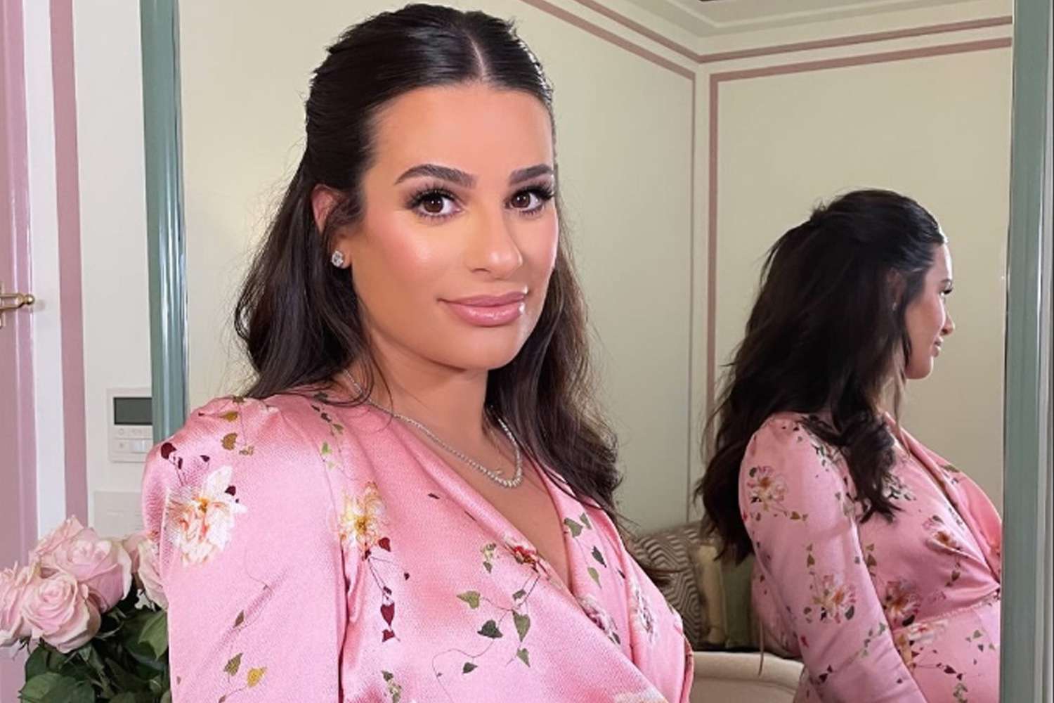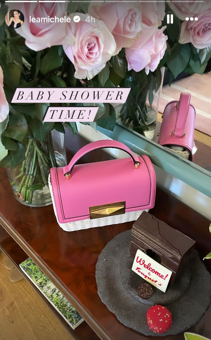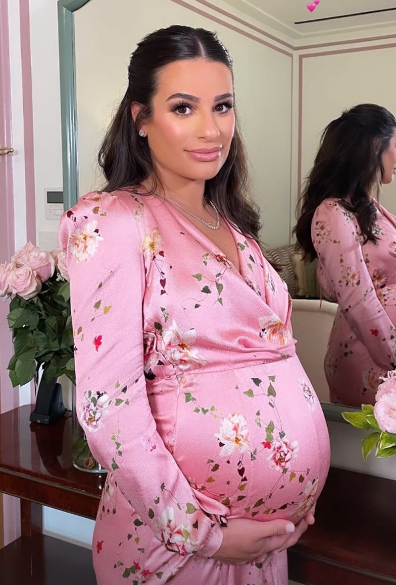 Lea Michele was simply glowing at her baby shower, wearing a stunning pink floral gown!