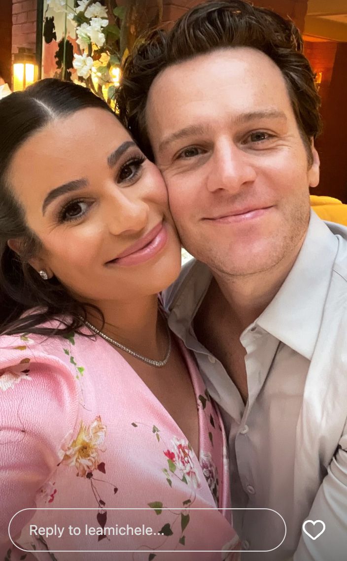 The ‘Glee’ alum posted photos of her baby bump, husband, son and friends, including Jonathan Groff